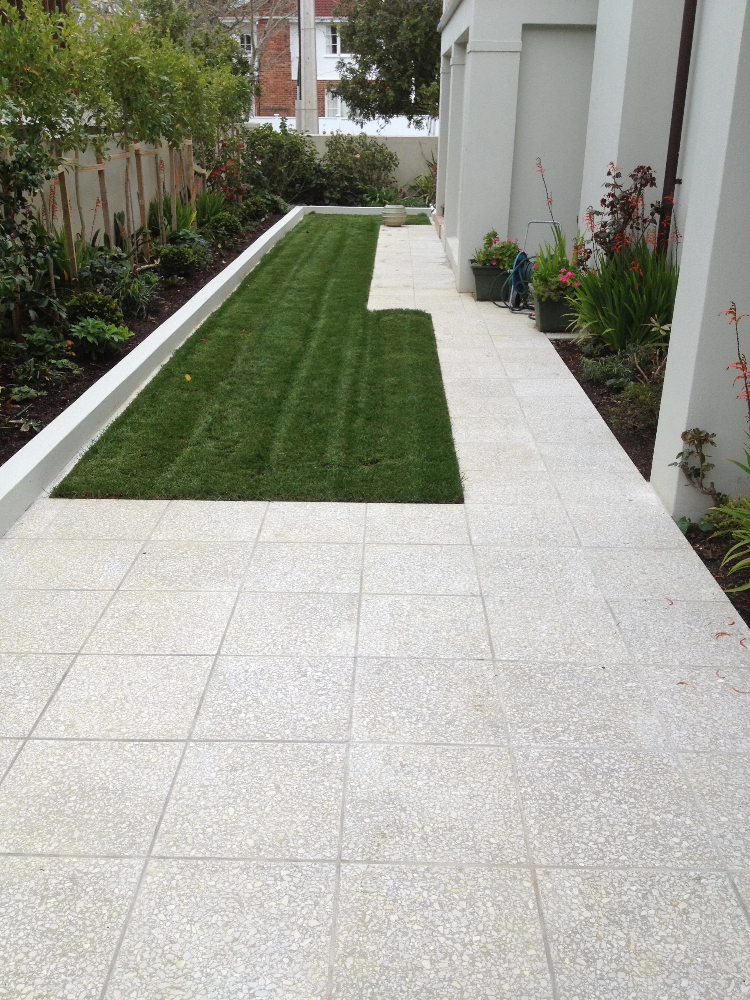 To counteract the visual constraints of a long, narrow backyard, we strategically used 450mm sized pavers. The specific dimension and laying pattern of these pavers were chosen to trick the eye, giving the illusion of a significantly wider and more expansive outdoor area.